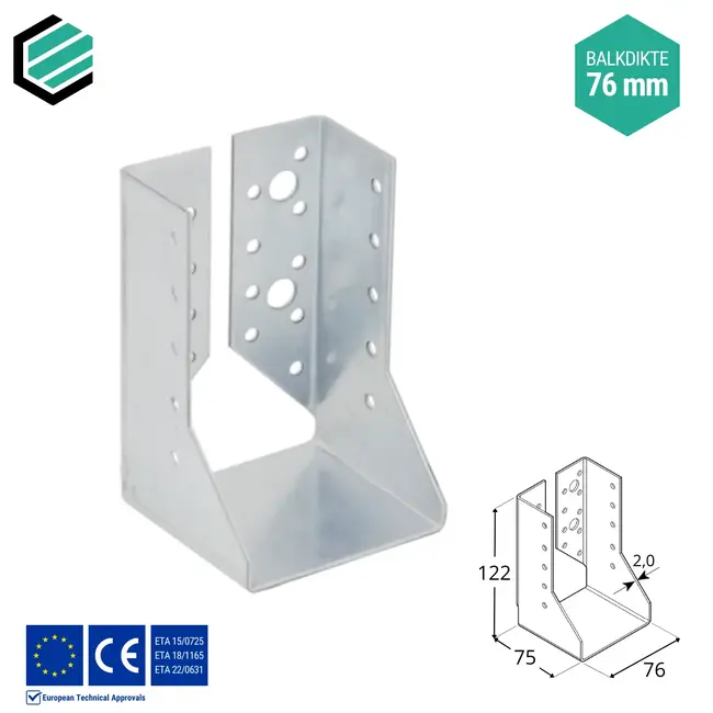 Balkdragers met binnenflenzen ("gevouwen") nodig voor een ijzersterke verbinding van uw hout- en of hout-betonverbinding? Wij hebben deze in verschillende afmetingen waaronder deze van 76x122x75 mm en een dikte van 2,0 mm.