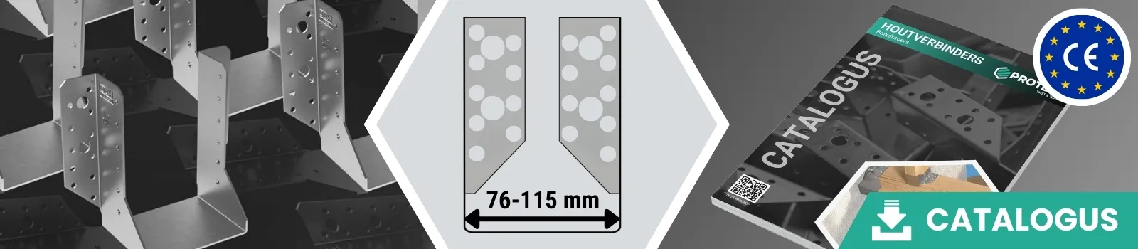 Balkdagers met naar binnenstaande zijflenzen (ook wel "gevouwen" genoemd) voor het bevestigen van balken tegen een muur of tegen een andere houten balk. Deze worden met name toegepast daar waar er sprake is van een beperkte ruimte zoals bv. op smalle balken/palen, en wanneer een mooier visueel effect gewenst is. Deze balkdragers zijn van een zware kwaliteit en leverbaar voor de gangbare kopmaten van zowel geschaafd als ongeschaafd hout. De balkdragers hieronder zijn geschikt voor balken met een dikte van 76-80-100 of 115 mm.
