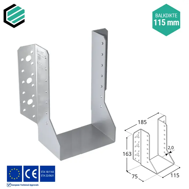 Raveeldragers nodig voor een ijzersterke verbinding van uw hout- en of hout-betonverbinding? Wij hebben deze in verschillende afmetingen waaronder deze van 115x163x75 mm en een dikte van 2,0 mm.