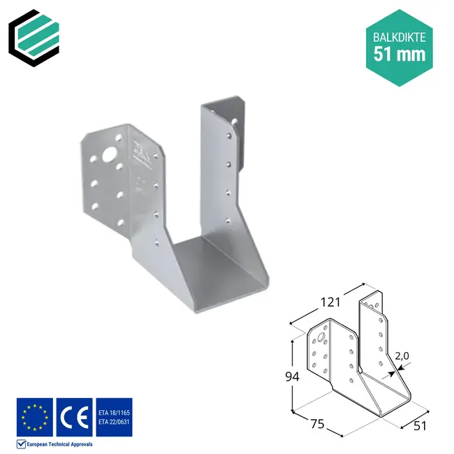 Raveeldragers nodig voor een ijzersterke verbinding van uw hout- en of hout-betonverbinding? Wij hebben deze in verschillende afmetingen waaronder deze van 51x105x75 mm en een dikte van 2,0 mm.