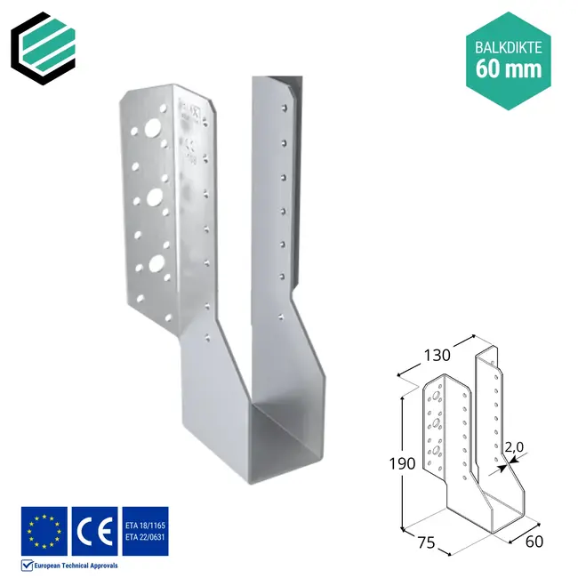 Raveeldragers nodig voor een ijzersterke verbinding van uw hout- en of hout-betonverbinding? Wij hebben deze in verschillende afmetingen waaronder deze van 60x190x75 mm en een dikte van 2,0 mm.